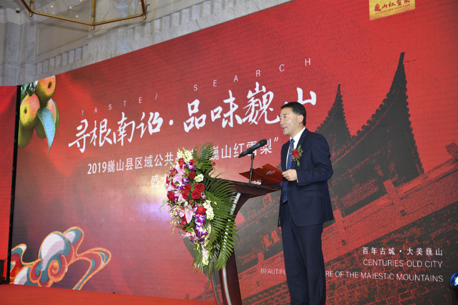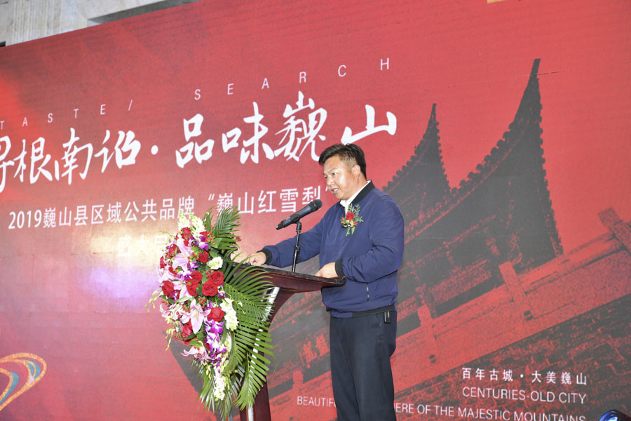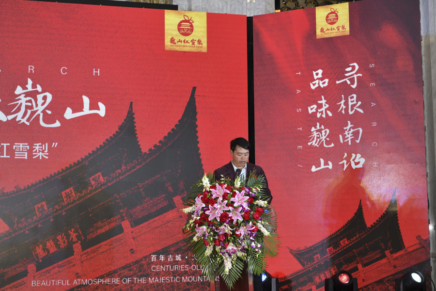 随后,巍山县人民政府王利伟县长、巍山县农业农村局局长沈看周,巍山县马鞍山乡朝阳合作社陈文波社长分别从巍山红雪梨的产业政策,种植、生产、加工全过程,历史沿革及价值等方面,全方位阐述了“巍山红雪梨”的发展前景及品牌打造的价值和意义。