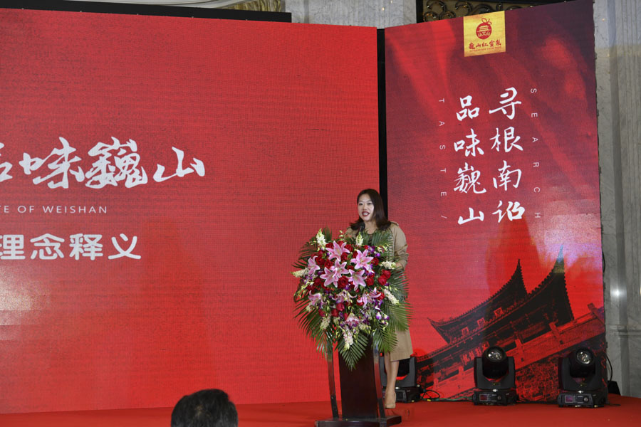发布会上,云南蔚岚信息技术有限公司副总周晶晶详细阐述了区域公共品牌的创作过程,包含了品牌定位、设计理念、设计应用、拟人形象等,并强调了此次发布会以品牌——“寻根南诏·品味巍山”为活动主题的意义。从历史、产地、种植和品质等四个方面,总结突出了“巍山红雪梨”的特性,同时,也诠释了“巍山红雪梨”的区位优势、源产地优势、精细化的科学管理优势、产品品质优势以及现有产业扶持政策优势等,从而体现了品牌价值和品牌发展战略。