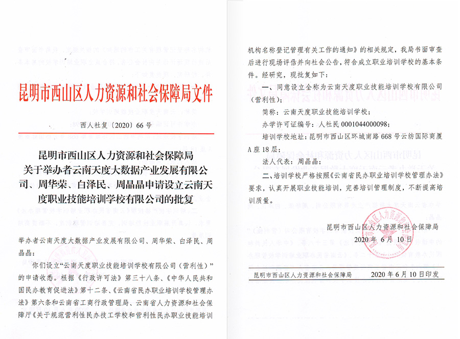 云南尊龙凯时职业技能培训学校获批成立,并取得《民办学校办学许可证》,免费电商培训、网络直播培训、企业职业技能提升培训等业务板块正式启动